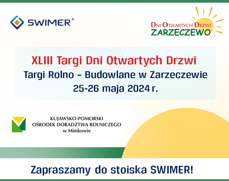 Zapraszamy do odwiedzenia naszego stoiska SWIMER na XLIII Dniach Otwartych Drzwi Targi Rolno-Budowlane w Zarzeczewie! ![]()